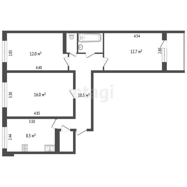 3-комн. квартира, 65.2м², 3/10 этаж