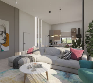 Передаётся современный дизайн-проект интерьера и ландшафтного дизайна, разработанные именно под этот дом и участок.