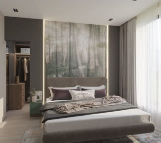 Приватная зона с собственной ванной и гардеробной — пространство, где день заканчивается правильно.