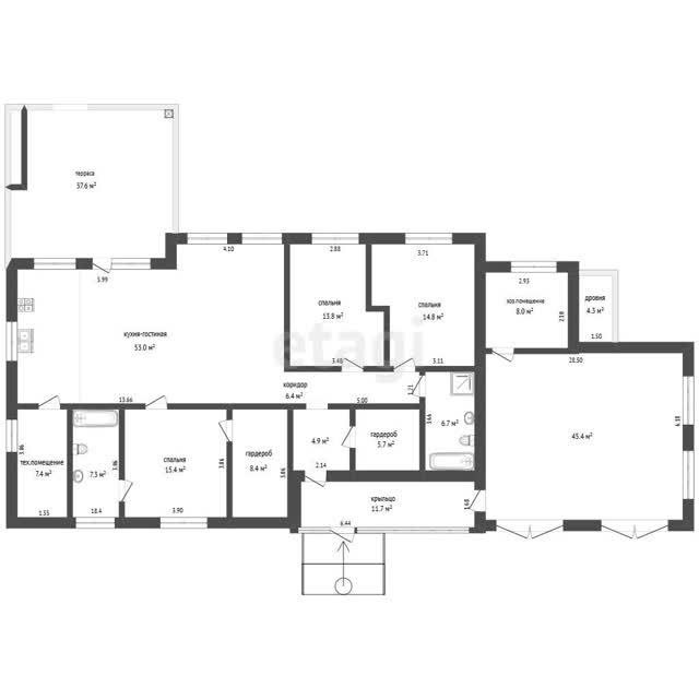 - Фундамент — буроналивной с монолитным бетонным перекрытием